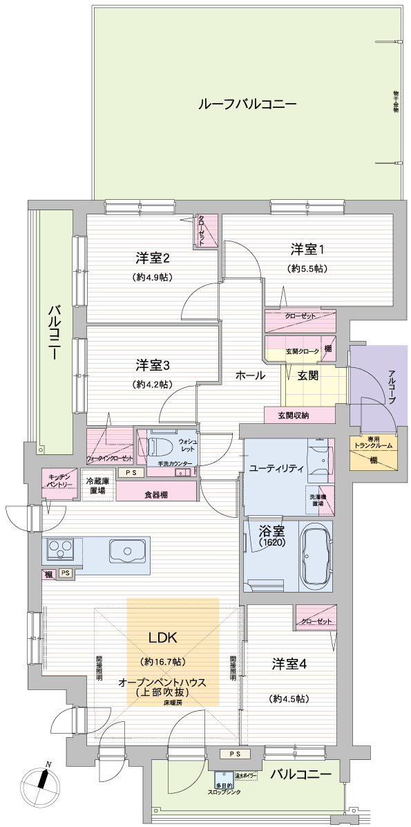 新築分譲マンションのリース物件で未入居。オープンペントハウス特別仕様住戸。最上階・南向き・角部屋の4LDKで天井高4.35mのオープンペントハウス付住戸。約30㎡のルーフバルコニー付プレミアム住戸です。設備・仕様も豪華です。スマホでお部屋の住宅設備機器をリモートコントロールできる最新システムです。スマートキーをはじめ、24時間換気システム、床暖房、食器洗い乾燥機、タッチレス水栓、食器棚、ダウンウォール、浴室暖房乾燥機、ウォシュレット、フルオートバスシステム、魔法瓶浴槽、玄関クローク、スロップシンク、無料高速インターネット通信が標準装備です。無料駐車場1台(機械式・上段)をご用意。また、多彩な共用施設を完備しています。フィットネスジム、シアター&カラオケルーム、テレワークルーム、ピットインガレージ、屋上庭園・バーベキューコーナー、ペット用グルーミングルーム設置。ペット相談。是非見学をお待ちしています。