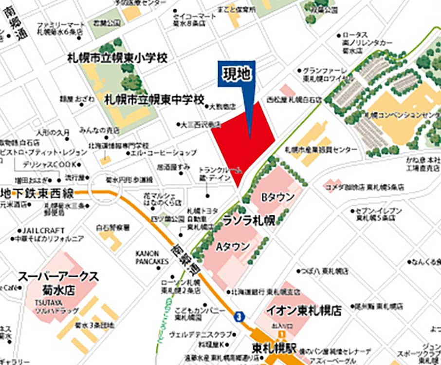 | 交通 | 札幌市営地下鉄東西線「東札幌」駅より徒歩7分 札幌市営地下鉄東西線「菊水」駅より徒歩9分 |