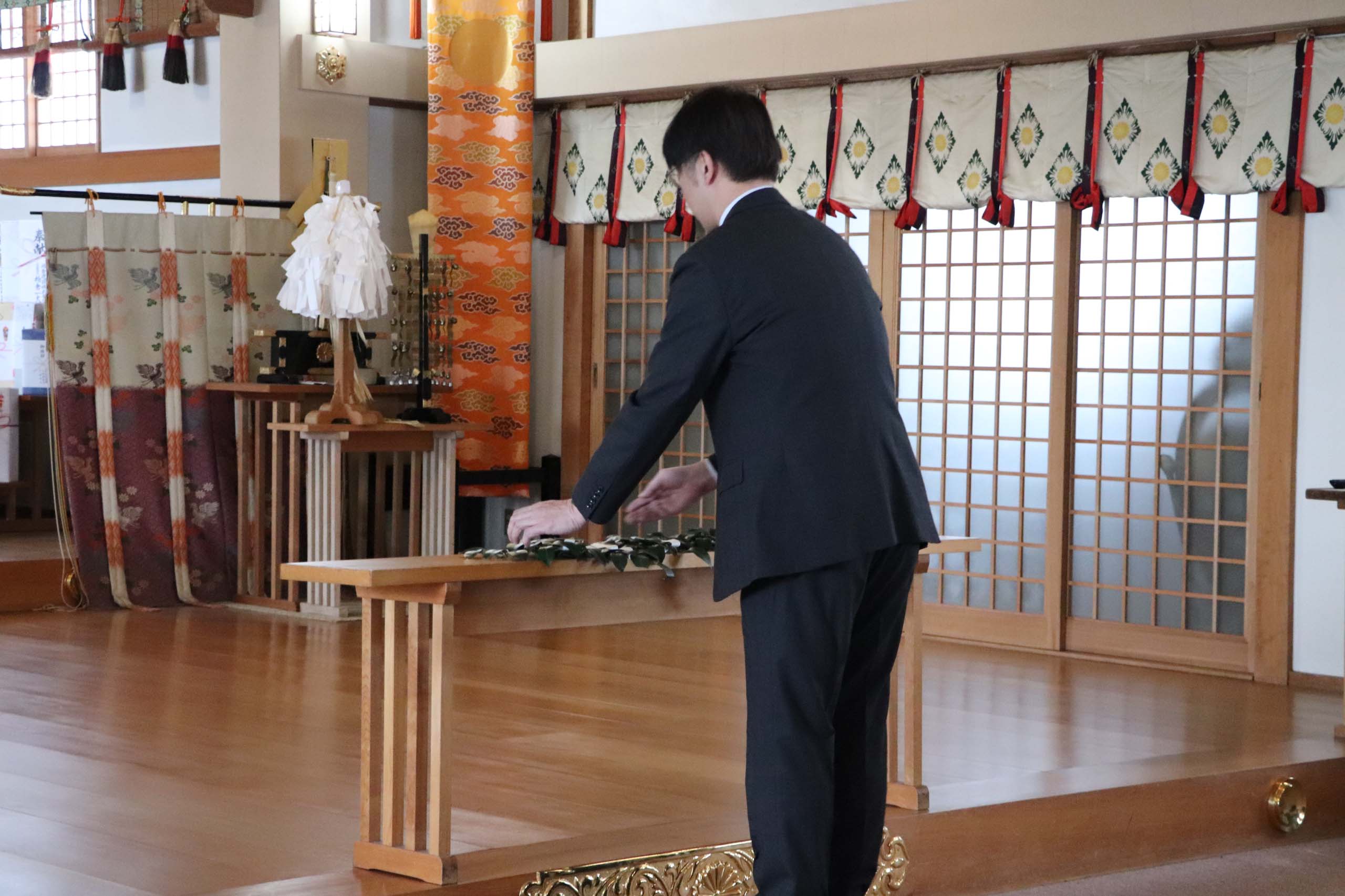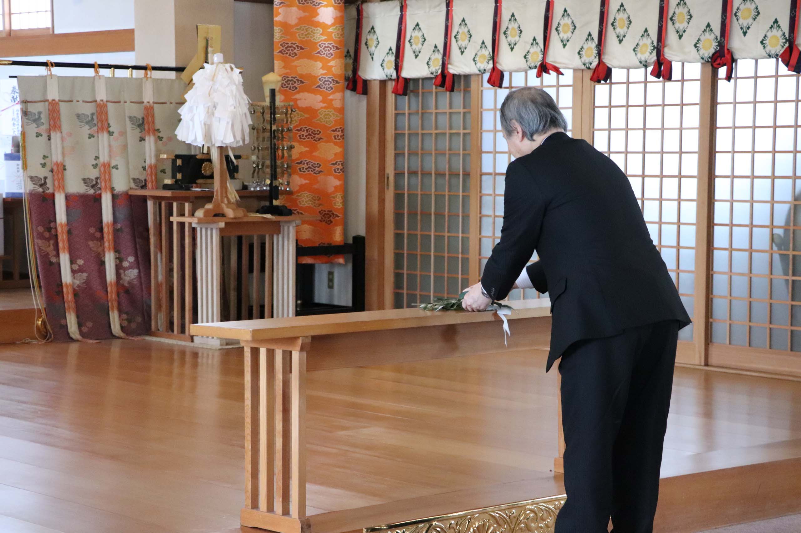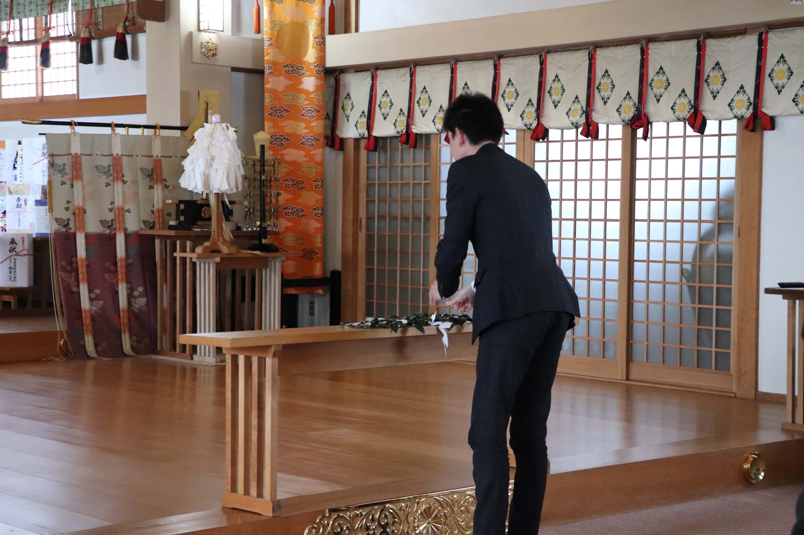 弥彦神社の神主様により厳粛に執り行われました。土地の守護神に無事故・無災害を祈願して、玉串を奉奠しました。