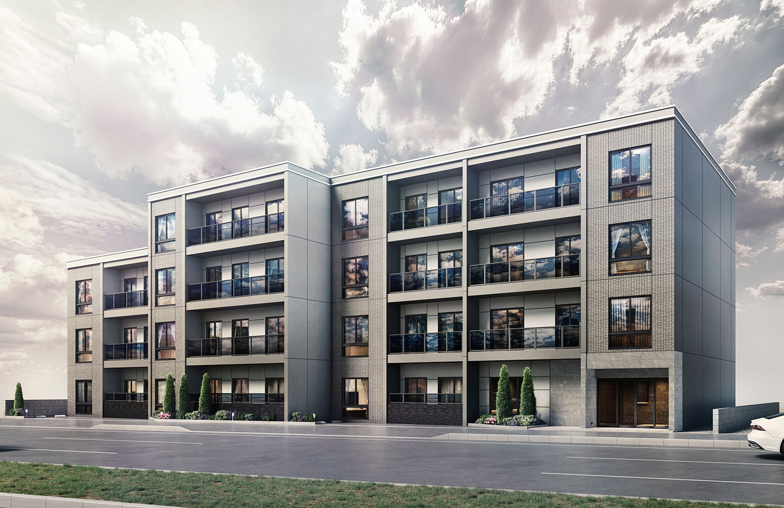外観は、直線美を基調とした端正なフォルム。